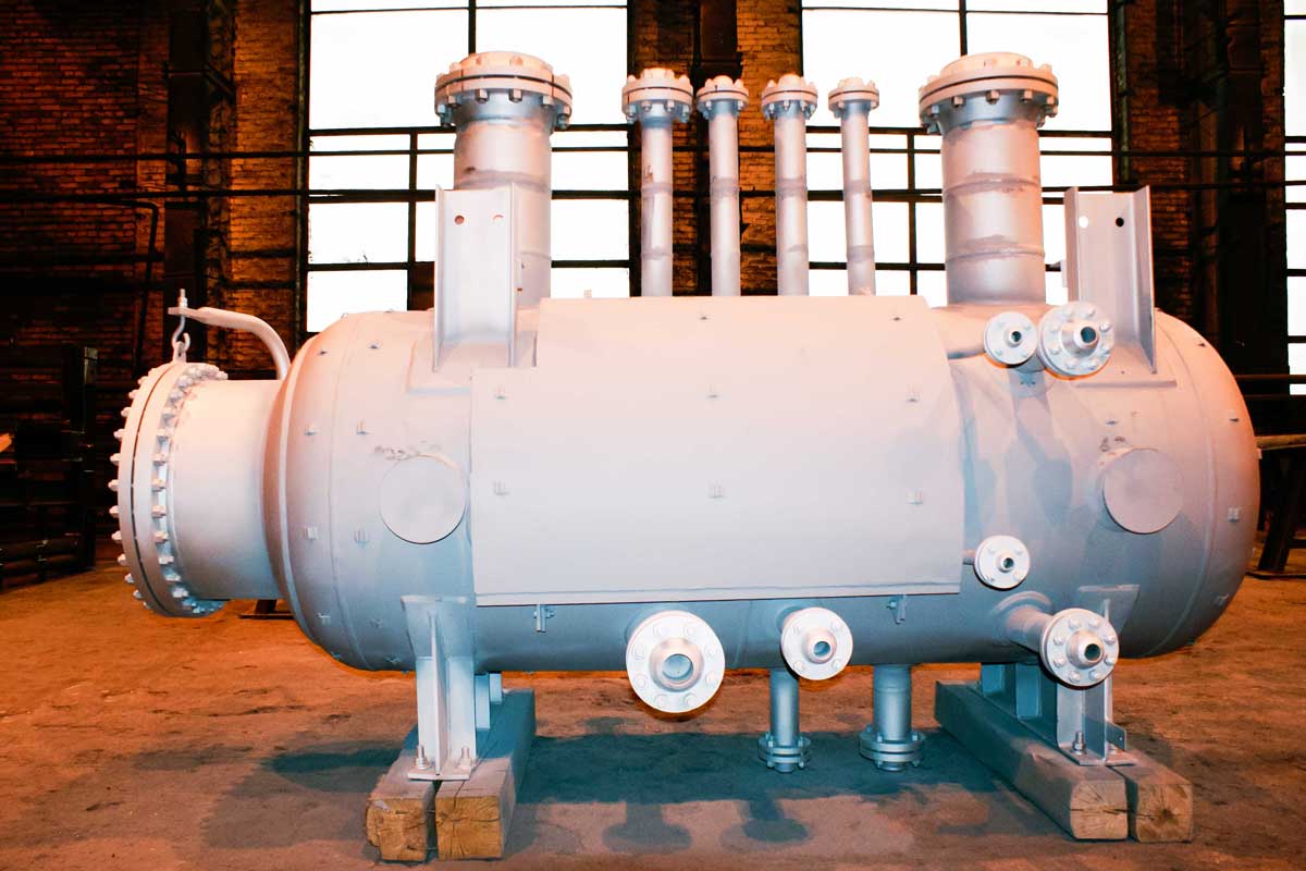 Горизонтальный сосуд для жидкой среды, объемом 6м3, условным давлением 1.6 Мпа, выполнен из стали для сварных конструкций с категорией металлопроката 6 или 8, оборудованный теплоизоляцией и теплообменным устройством.